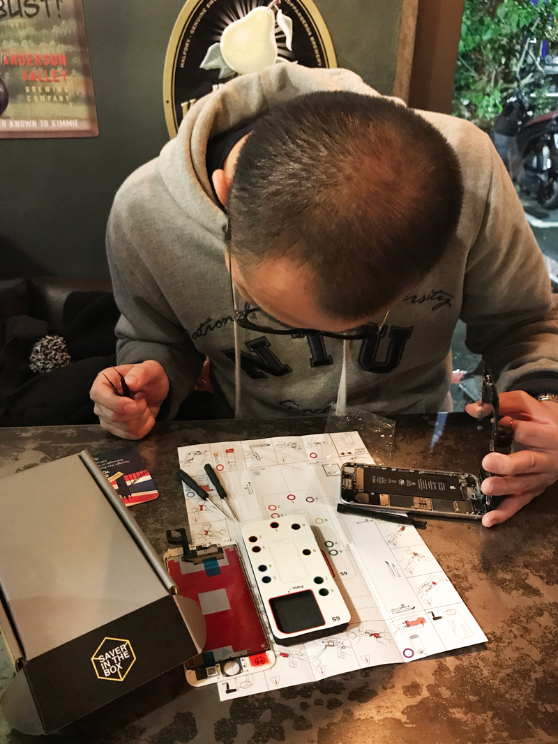 我6s從摔壞到現在大概半年,一方面是想要等新手機,另外一方面是外面手機行的價錢實在太高,有天在臉書朋友分享看到救星盒子這個頁面,提供我換手機螢幕全新的選擇 – DIY,他們會提供一個叫螢幕盒子的商品,因為本人手殘怕修壞,所以我跟他們預約了到府維修服務,線上預約完,大概半小時就有工程師親自跟我聯絡,確認時間地點,我約在我家旁邊的咖啡廳,工程師整體幫我更換大概半小時,邊換邊提供教學,螢幕盒子裡面有提供螢幕工具、說明書,其實實際看到他一步一步按造說明書換,我感覺下次假如有機會我也想試試(希望不要有下次哈)。