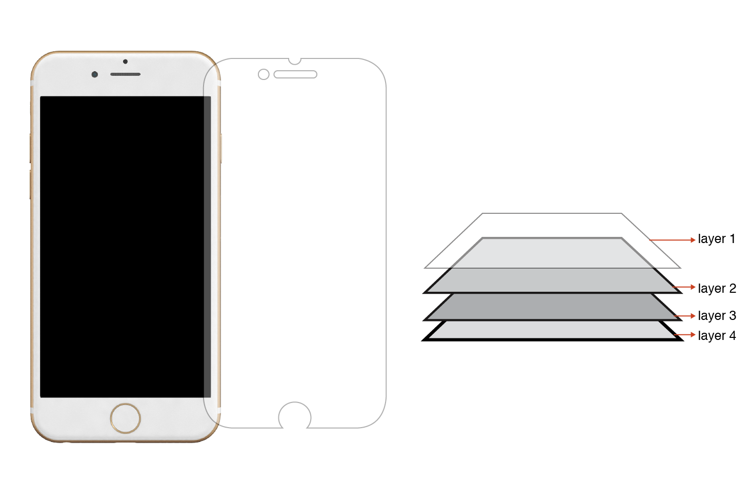 - 一片保護貼要有多層設計: 最上層防汙、第二層抗刮、第三層防震材質增加強度